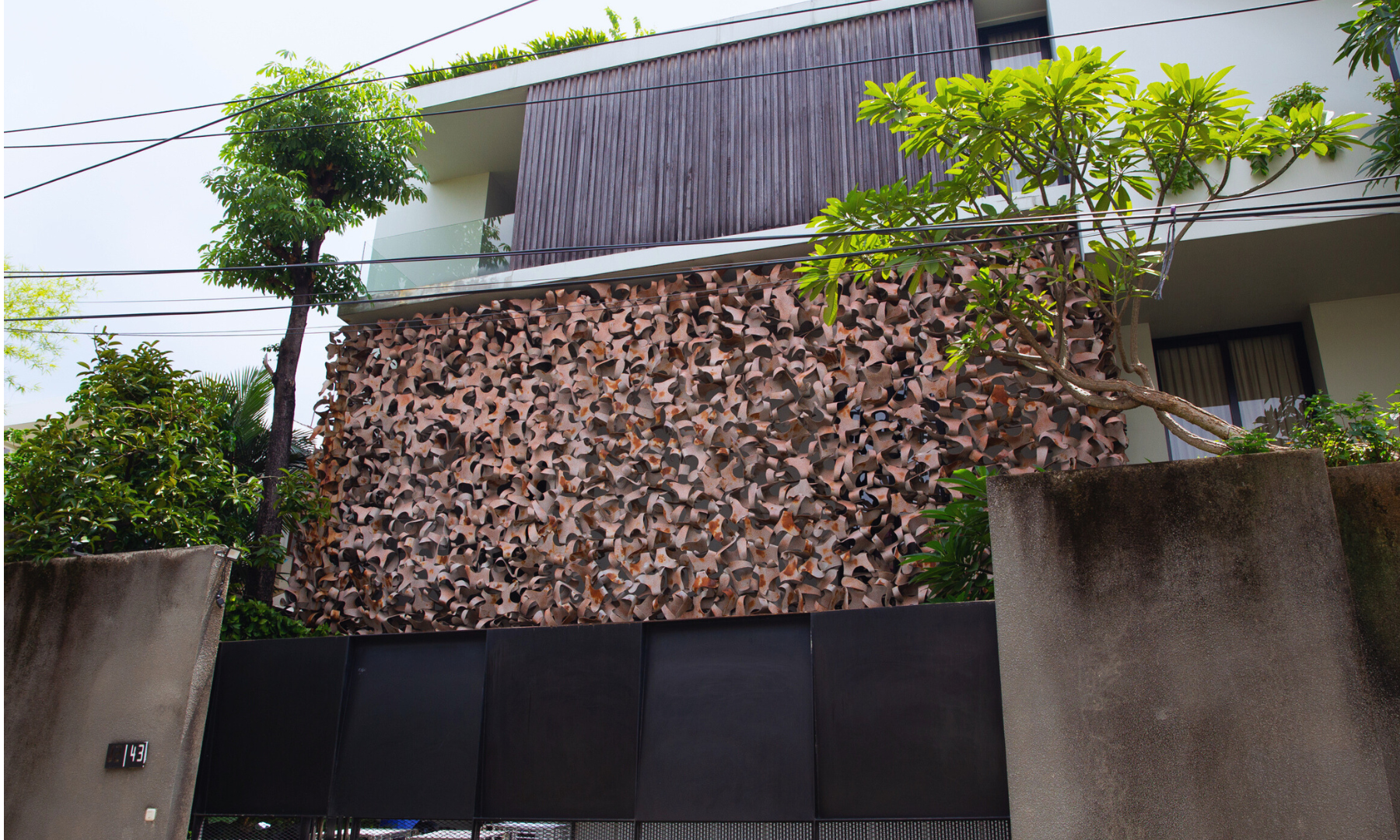 Beyond aesthetics, the façade functions as an intelligent skin. It provides privacy, filtered light, and passive ventilation while introducing a strong sculptural identity to the residence. Material honesty and controlled irregularity define the work, positioning the building not merely as a place to live, but as an architectural statement where contemporary art, function, and environment are fully integrated.
