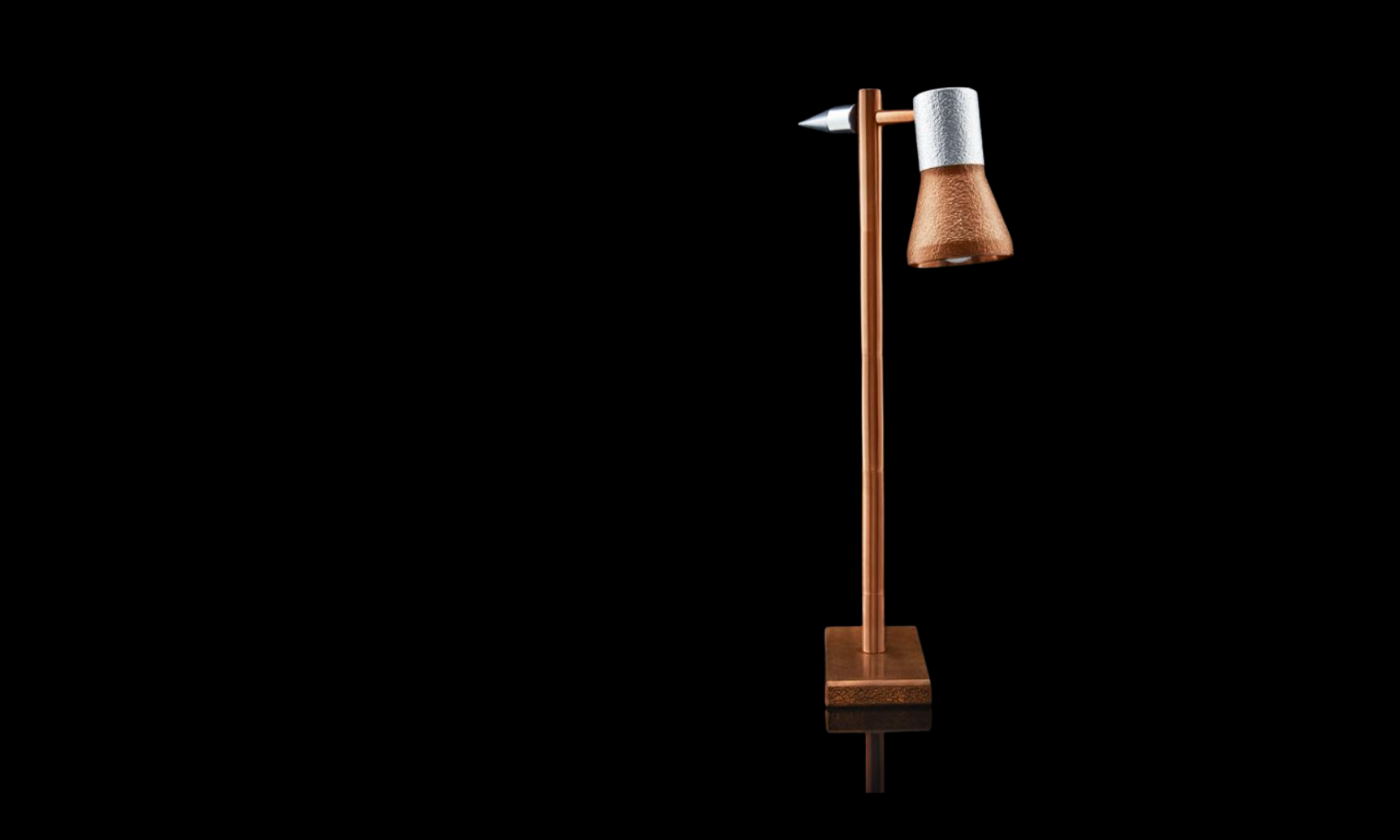 The tapered lamp head delivers focused illumination,calibrated for intention and control. Over time, the copper surface develops anatural patina, allowing the object to evolve with its environment. Smartfunctions seamlessly as both lighting and sculptural object, designed forinteriors that value precision, material integrity, and thoughtful designdecisions.